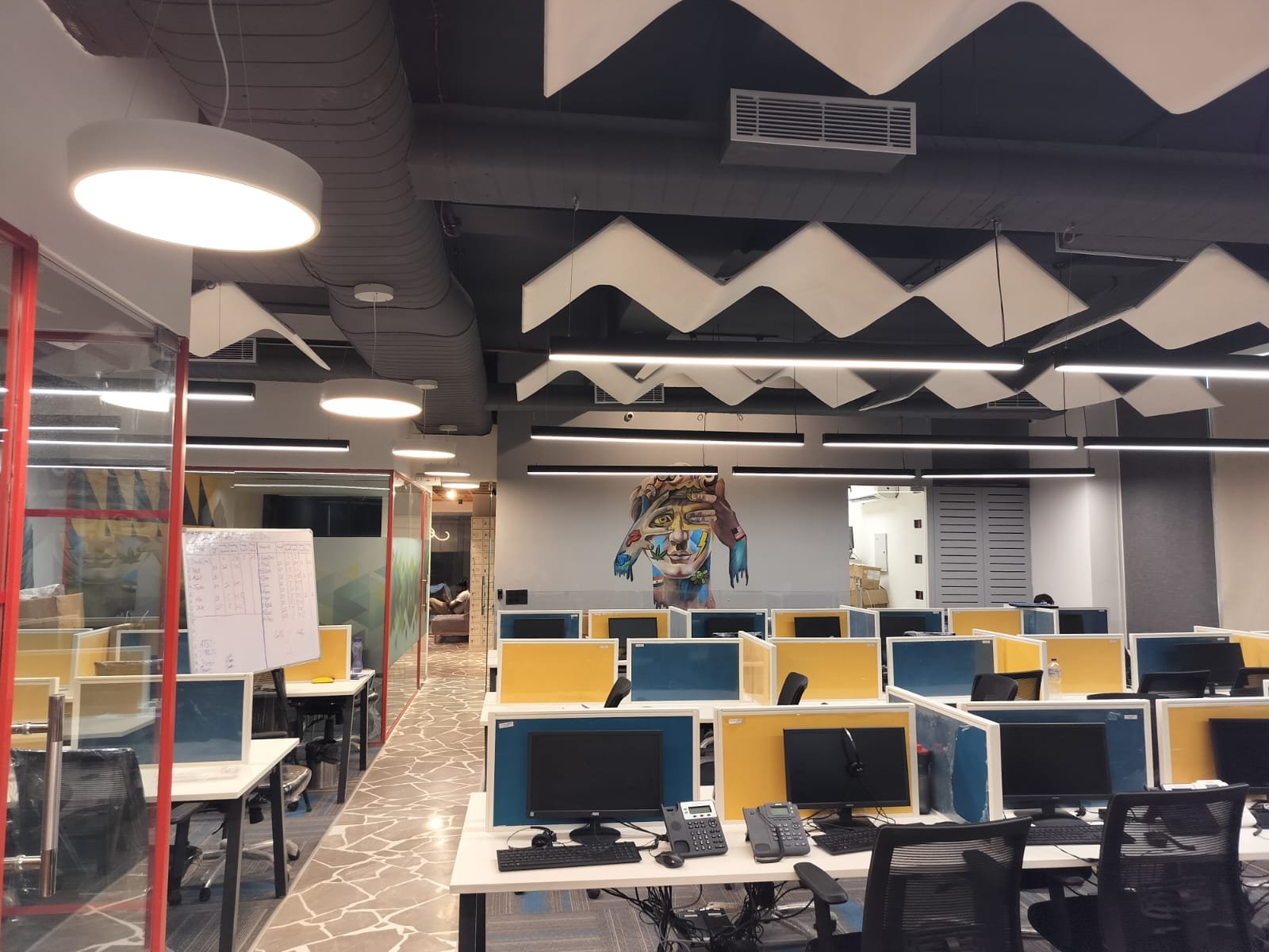 Ergonomic and spacious workstations that enhance productivity and teamwork.